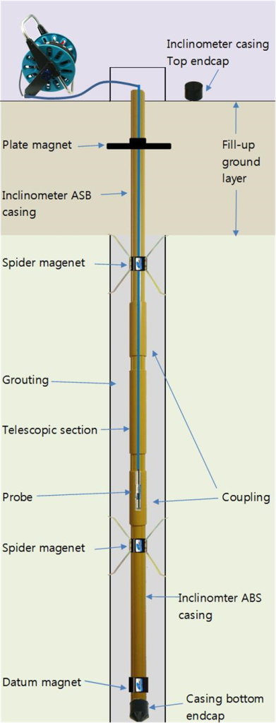bottom of PVC access pipe (or inclinometer casing). - Operator fix datum magnet at the steady layer as like rock and install spider magnet by
